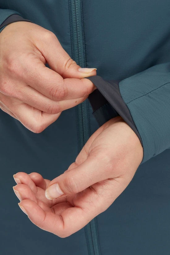 Designed for upward mobility, the jacket features refined sleeve articulation for climbs and scrambles, along with a snug hood that seamlessly fits under a helmet. Three zippered pockets offer convenient storage for essentials like maps or snacks, with an inner chest pocket doubling as a stuff sack featuring a harness attachment loop. Elasticated cuffs accommodate gloves, while the single-sided rear hem adjustment prevents drafts during colder excursions.